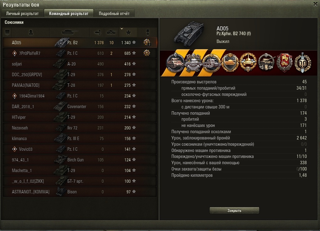 Играл соло - Медали де Ланглада-Паскучи-Колобанова, Стальная стена, Основной калибр, Невозмутимый, Защитник, Воин и 15-ть бонов.:izmena: А также Костолом, Дуэлянт, Огонь на поражение, Непробиваемый.