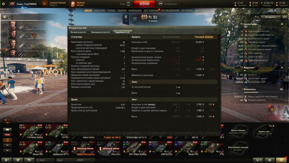 • Танк хороший, но не мешало бы добавить немного пробития орудию, да и лоб "заштопать"