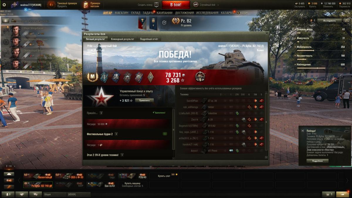 Так дело не в статке, а в удовольствии и исключительном влиянии на результаты боя, взводом в особенности. А "фиолетовая" статистика на В2 это так, приятное дополнение, от которого ни горячо, ни холодно. Наличие высокоуровневой техники не говорит от наличии опыта у игрока. Потому что, даже игрок, который играет в буквальном смысле "пыщ-пыщ, ололо", и сливается в течении 30 секунд боя, рано или поздно докачается до 10-го ур. К тому же, по моим наблюдениям, на высоких уровнях иной раз союзники творят такую дичь, что в песке видишь больше смысла в действиях союзников, хотя опыта у них кот наплакал. От того и N тыс. боёв на танках 1-4 ур.