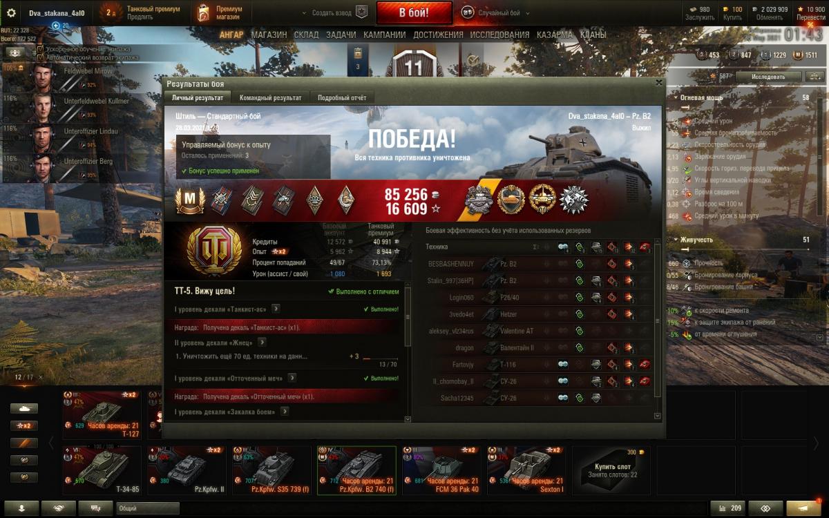 Нашёл один (почему-то?) скрин того боя. И прикол - обрати внимание на количество выстрелов/попаданий. И там и там одинаково, но БП теряют пробитие с расстоянием, а на Штиле я много издалека палил.