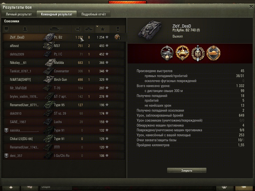 Я катал всё время соло! 2-3 боя взводом за всё время. В этой теме спрашивал про взвод с гуру - как то не срослось.