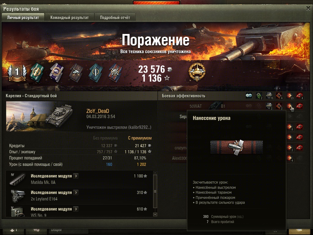 Cейчас эксперимента ради вкачал Матильду за свободку, посадил туда экипаж, эквивалентный тому, что сидит у меня на В2 - даже хуже. Поставил тоже оборудование и вышел в бой: