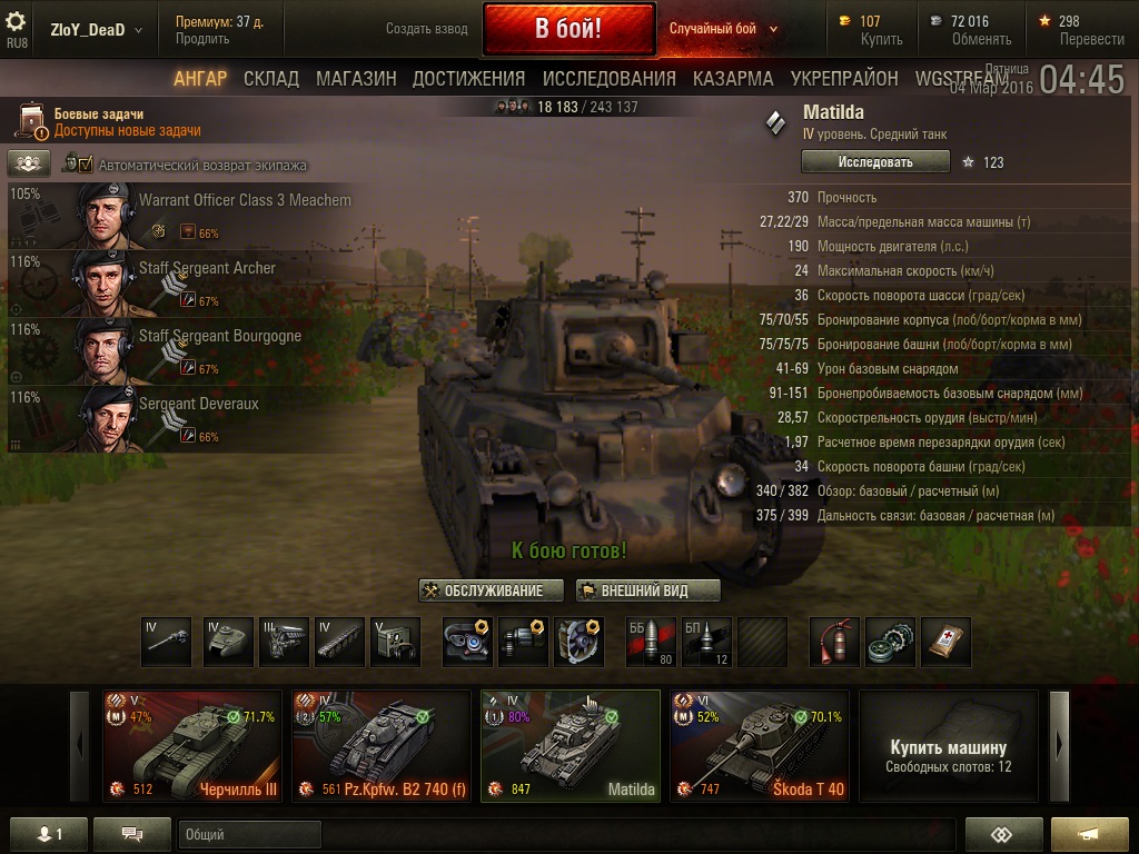 Хотя, как по мне, надо ввести Матильду 1 (то, что сейчас у нас в игре, это Матильда 2, более поздняя версия), внешне напоминает Валентайн, только орудие у неё пулеметное (Пц 1 Ц и Ко передаёт привет) :trollface: И сразу -1 головная боль В2водам :B Не смотря на всю сложность, с Матильдой на В2 можно бороться. Степень тяжести борьбы с Матильдой зависит от того, кто ей управляет.