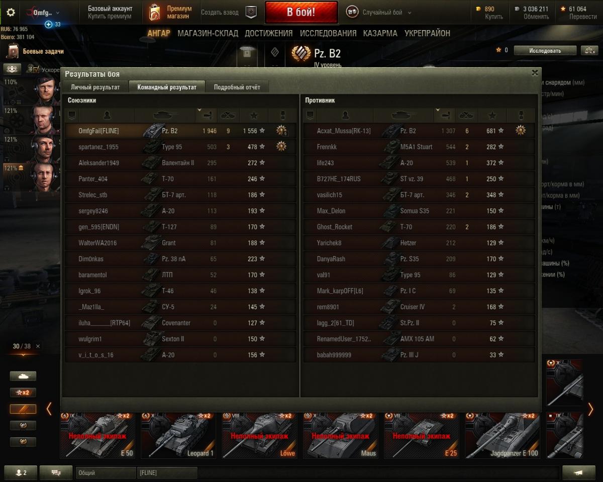 Засилие б 2 прошло и танк заиграл. Лютый ДПМ по факту я опасаюсь только ПТ (разбирают из инвиза), мотильды (пробивает и перестреливает), ну и тяжело пробивается АМХ 40 но он не сильно опасен, а да еще Ф 30 опасен. А так танк, весьма резв, точен, ИМЕЕТ БРОНЮ и отличный ДПМ. Взял первую медаль Димитру. Покупка однозначно окупила себя.