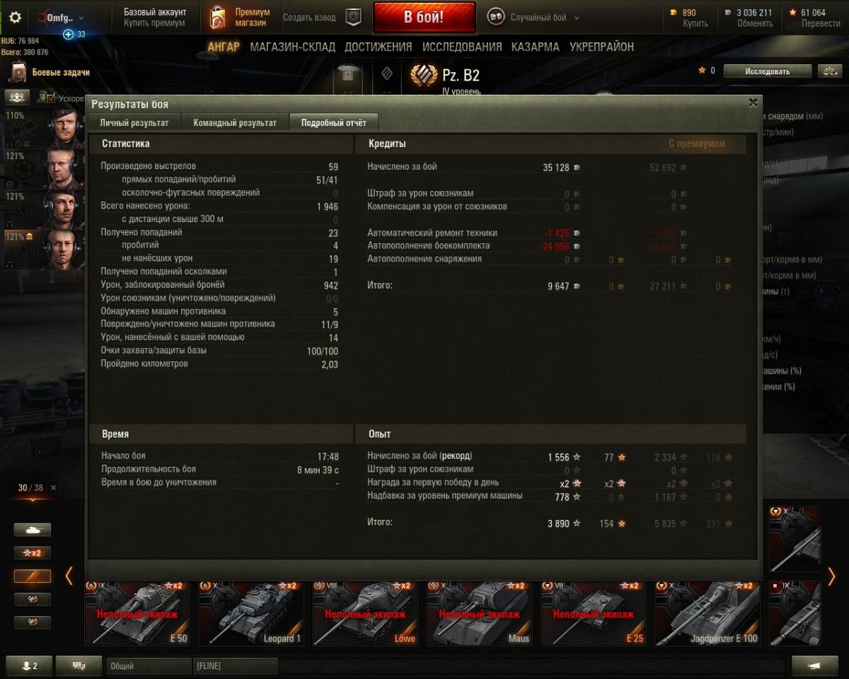 300 максимум за бой вытанковано... а так есть и 0 и 50 и 100. короче прям фу какой то.