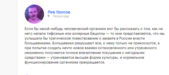 Li_7 Опубликовано: 18 июля, 2022 Игроки 954 публикации 537 боёв Поделиться Опубликовано: 18 июля, 2022 17 июл 2022 - 12:40 пользователь Einheri_Martin сказал: 5 декабря 1917 года. жаль он ещё о вирусах не знал 17 июл 2022 - 12:14 пользователь Einheri_Martin сказал: 5 декабря 1917 года. ему кто то сказал. Даже не помнит кто. Бывает. зы там ещё Тэффи была. Мол, власть не тем досталась. Какое некритичное недомыслие. Не по ёйному. И давай хвостизмом нам в харю... ...— Сам Ленин! Сам приедет! Ах, дожить бы только! Ах, взглянуть бы только!Приехал.Поднял воротник, спрятал нос, пришел на собрание.Вот он какой!Рост средний, ..." Читай м-ин: рост средний Ссылка на комментарий