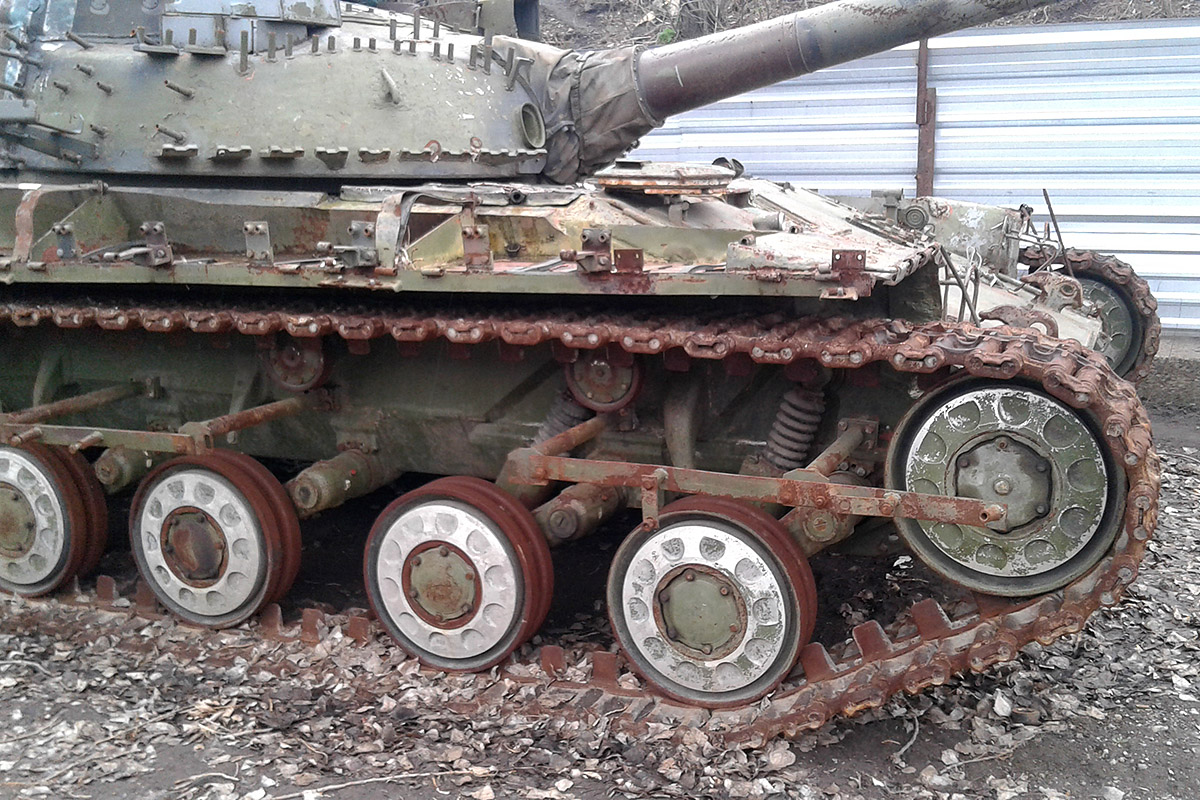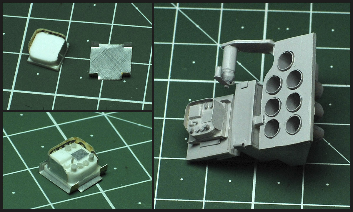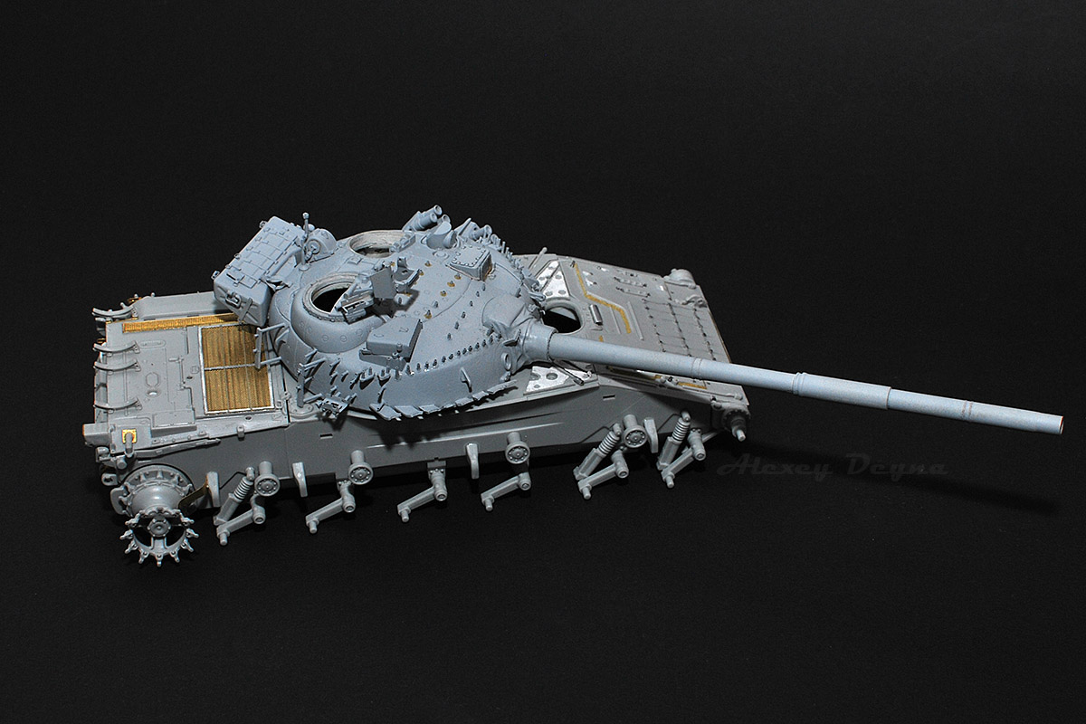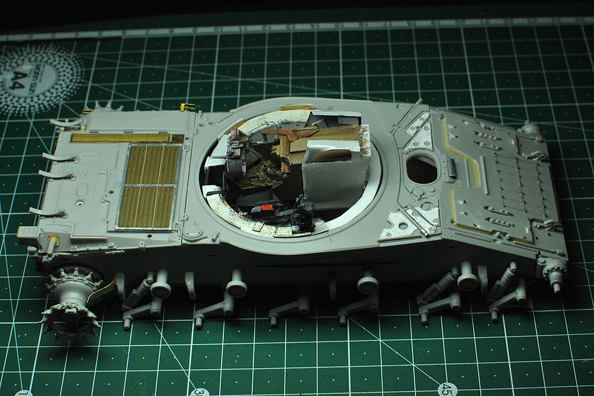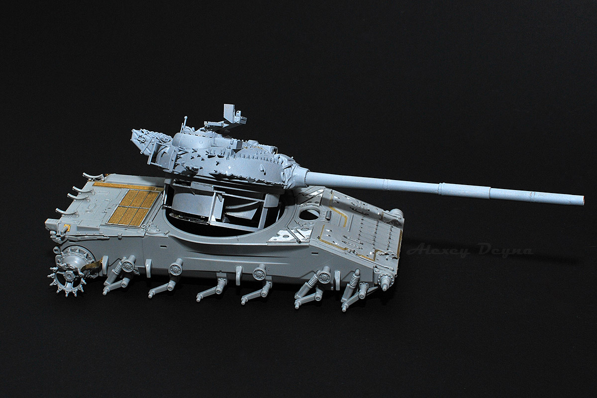 Впереди еще крепежи боковых блоков активной брони (с короткими бонками) :zombi:и крепежные хомуты от отсутствующих баков (на фото оригинала хорошо видны).