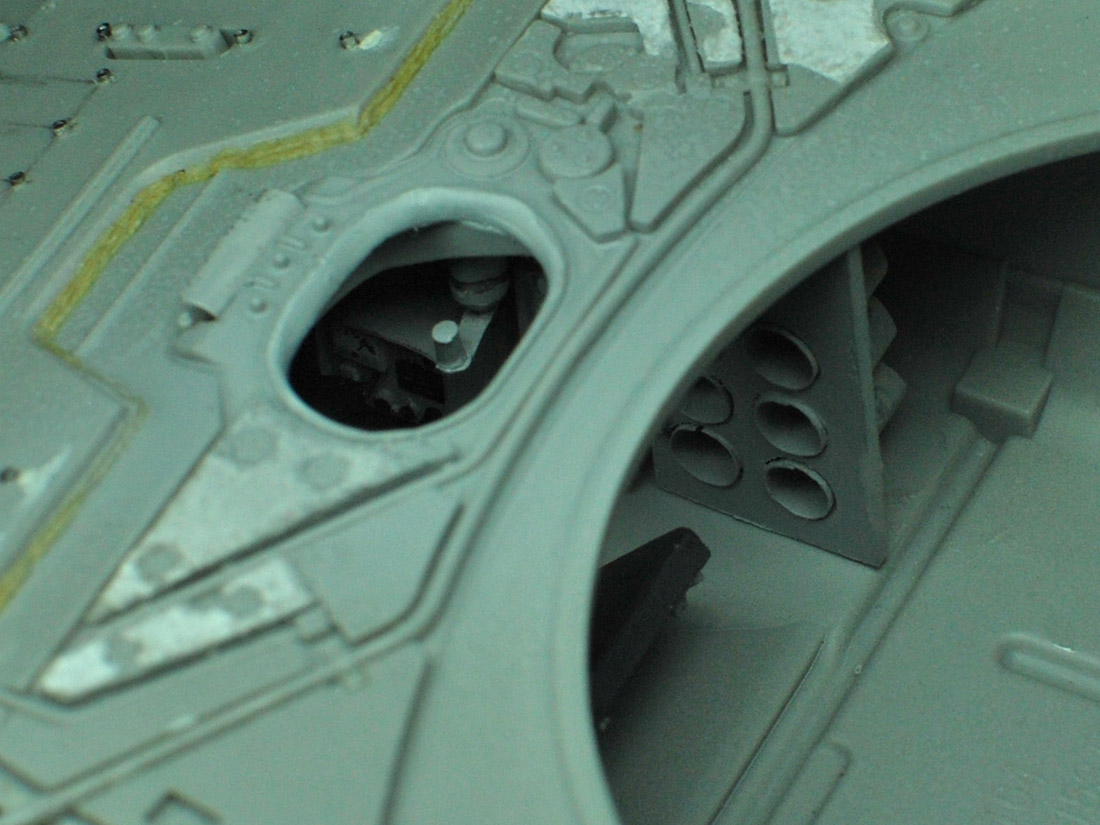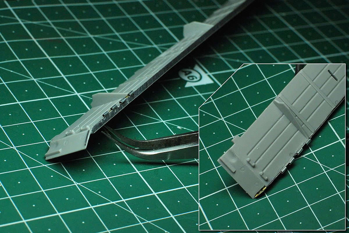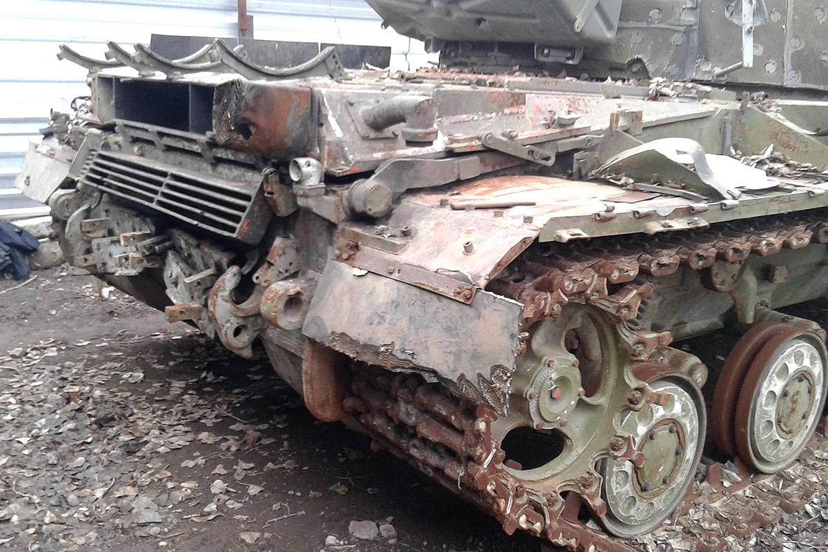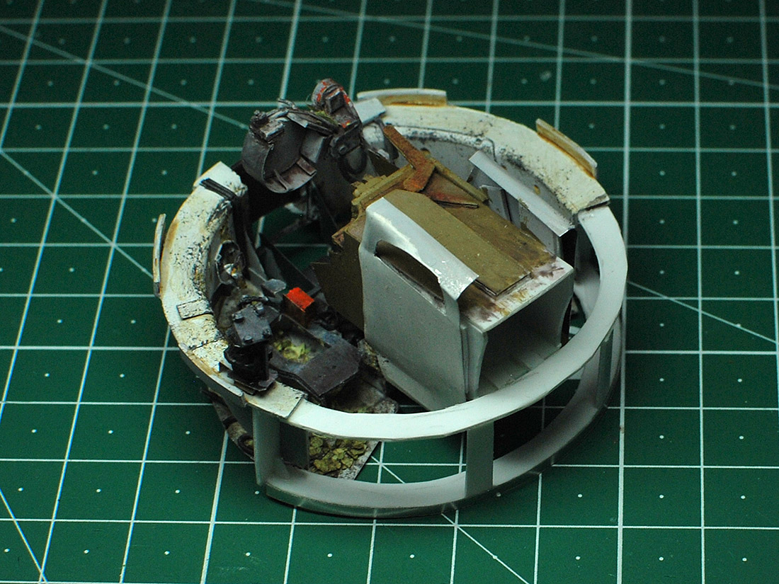Впереди еще крепежи боковых блоков активной брони (с короткими бонками) :zombi:и крепежные хомуты от отсутствующих баков (на фото оригинала хорошо видны).