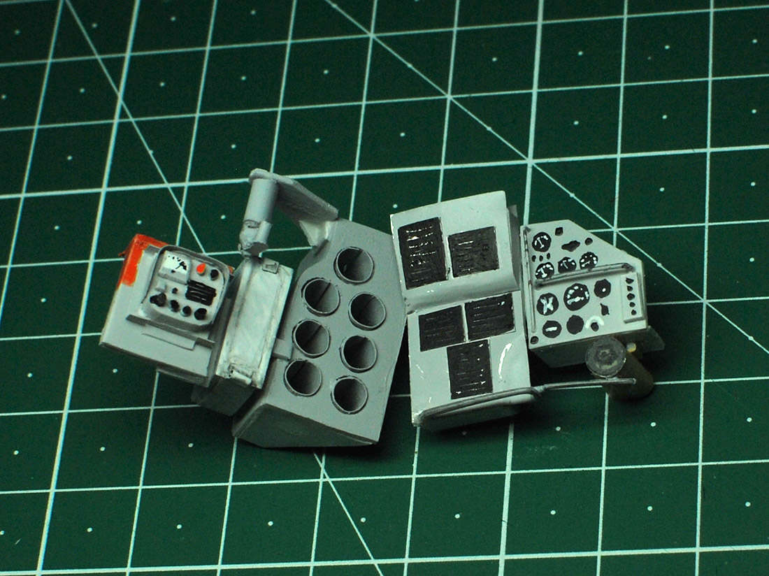 Поработал над левой стороной. Там приборная доска и щит с табличками-инструкциями.