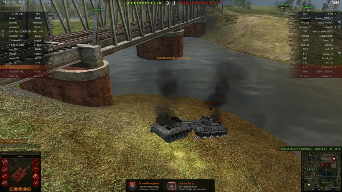 sexilol Опубликовано: 16 сентября, 2016 Игроки 35 публикаций 6 783 боя Автор Жалоба Поделиться Опубликовано: 16 сентября, 2016 А я удивлялся почему друзья бросили игру)))Раньше такой ерунды не было..Да и баланс лучше был..Попался на карте Прохоровка (4-7 лвл)В топе у нас и у противников е25...У нас игрок который сзади в лесу сидит и нечего не делает,у противника рукастый.Светит..не пройти не проехать..В итоге 12-0 проиграли.Ох уж этот баланс)))Вообщем давно уже не та игра.. Ссылка на комментарий Поделиться на других сайтах Другие способы поделиться...