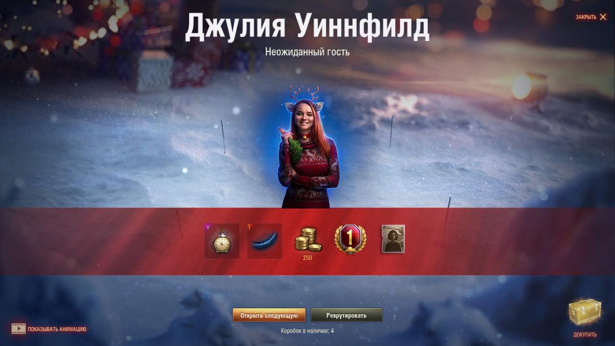 3A_PBAHblE_TPYCbl Опубликовано: 15 декабря, 2019 Игроки 10 236 публикаций 3 293 боя Жалоба Поделиться Опубликовано: 15 декабря, 2019 Цитата Вам присвоены следующие награды:Добавлена малая коробка (x5)Снегурочка: 1Добавлено: Персональное учебное пособие (x1)Добавлен стиль «Зимняя сказка 2020»Начислено фрагментов чертежей на технику CCCP: 60Начислено фрагментов чертежей на технику США: 60Начислено универсальных фрагментов: 100Начислено зарядов: 4Достижения: Медаль Снежинского I степениДобавлено нашивок: Генерал Мороз 10 уровень. Девочка красивая в городе жила, очень неприступная девочка была, в школе не шалила и вела дневник, и за эти записи сядет трудовик. Ссылка на комментарий Поделиться на других сайтах Другие способы поделиться...