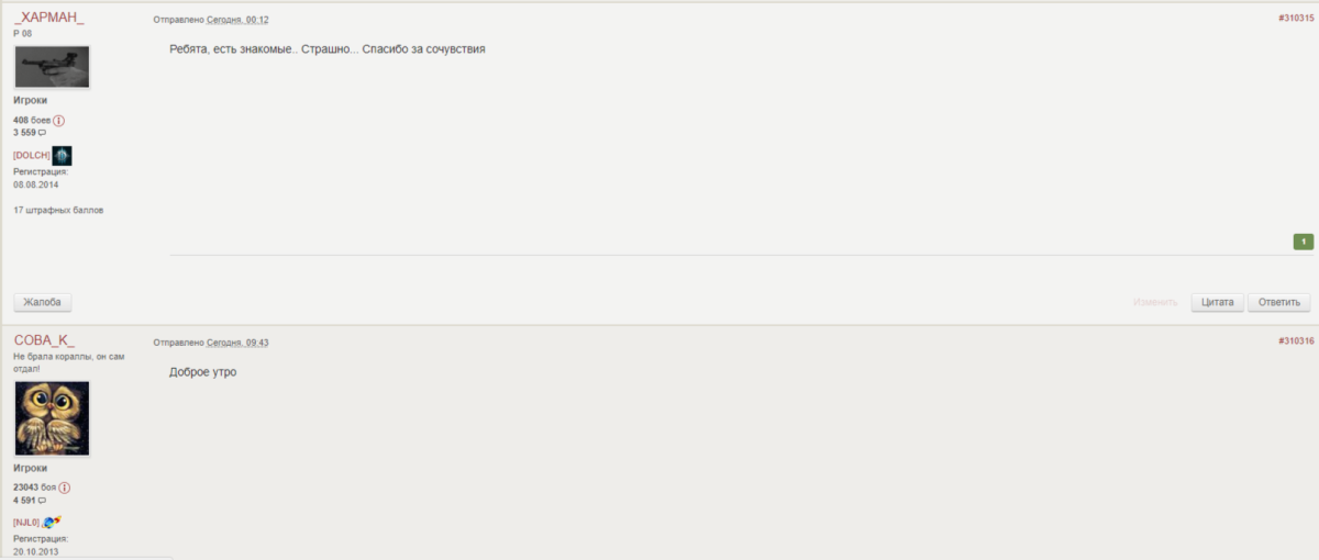 COBA_K_ Опубликовано: 23 марта, 2024 Игроки 6 845 публикаций 23 060 боёв Жалоба Поделиться Опубликовано: 23 марта, 2024 23 мар 2024 - 19:16 пользователь HOC_MOHAPXA сказал: Клар, он у меня в игноре.Подумай, может это жжжжжж неспроста? Я подумаю об этом. 23 мар 2024 - 19:35 пользователь Kingclan сказал:уж лучше доник в теме чем так Я уже успокоилась.Ещё раз прошу прощение, за всплеск эмоций. 3 Ссылка на комментарий Поделиться на других сайтах Другие способы поделиться...
