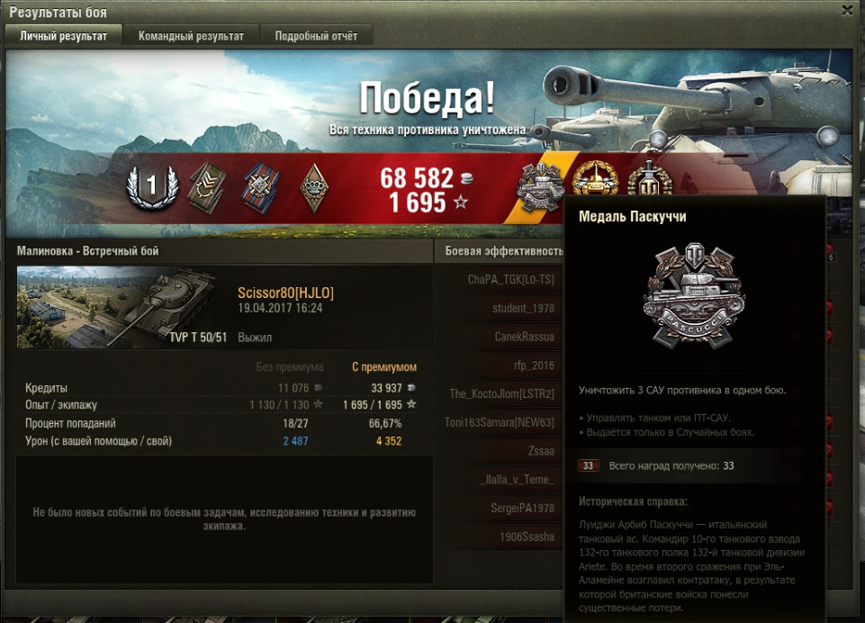 Yragan4uk Опубликовано: 20 апреля, 2017 Игроки 24 559 публикаций 33 058 боёв Поделиться Опубликовано: 20 апреля, 2017 20 Апр 2017 - 11:00 пользователь Scissor80 сказал: 0,5?Бери круче20 Апр 2017 - 10:54 пользователь TARANTEYirl сказал:Какой Тарантей? Ссылка на комментарий