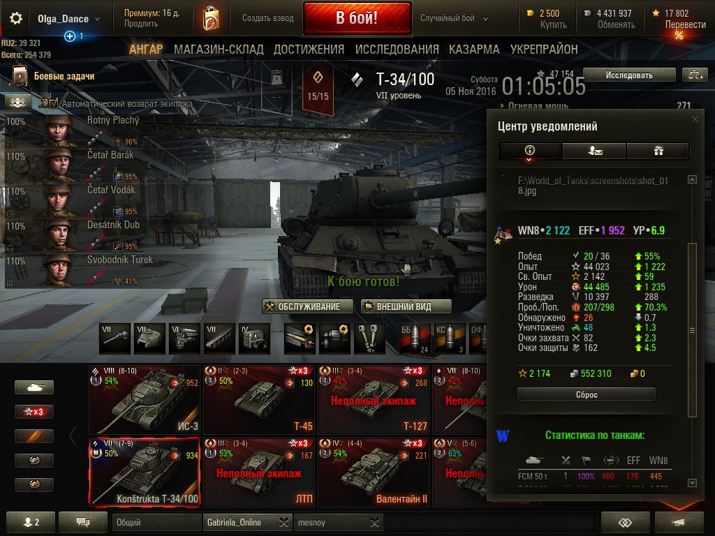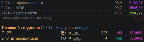 NUBYARA71 Опубликовано: 16 мая, 2017 Игроки 16 316 публикаций 36 247 боёв Поделиться Опубликовано: 16 мая, 2017 16 Май 2017 - 22:57 пользователь Olga_Dance сказал: Слушай, а т-127 не пойдёт? Там фарм не очень на третьем уровне, но экипаж покачать, да и сам танк не ущербный на своём уровне, тот же ЛТП ему уступает сильно. у мну есть форумный акк играл на т127 http://cdn-frm-eu.wargaming.net/wot/ru/uploads/monthly_05_2017/post-4815636-0-65177500-1494965236.pngза 330 боёв вот такой вот экипаж http://cdn-frm-eu.wargaming.net/wot/ru/uploads/monthly_05_2017/post-4815636-0-40912300-1494965331.pngЕсли б играл 300 боёв на 8лвл в том же КБ экип был бы 3+ перка ,ды и песочные твинки .... Ссылка на комментарий Поделиться на других сайтах Другие способы поделиться...