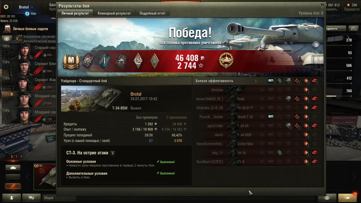 Das_Feuer_liebt_mich Опубликовано: 24 июля, 2017 Игроки 15 929 публикаций 31 879 боёв Поделиться Опубликовано: 24 июля, 2017 24 Июл 2017 - 10:55 пользователь NUBYARA71 сказал:еуроноджиб на Т34-85М без норм экипаhttp://cdn-frm-eu.wargaming.net/wot/ru/uploads/monthly_07_2017/post-4815636-0-21938800-1500882892.jpg ну и как сей пепелац?судя по перкам хороший ЛТ Пластмассовый мир победилМакет оказался сильнейПоследний кораблик остылПоследний фонарик устал, а в горле сопят комья воспоминаний. Ссылка на комментарий