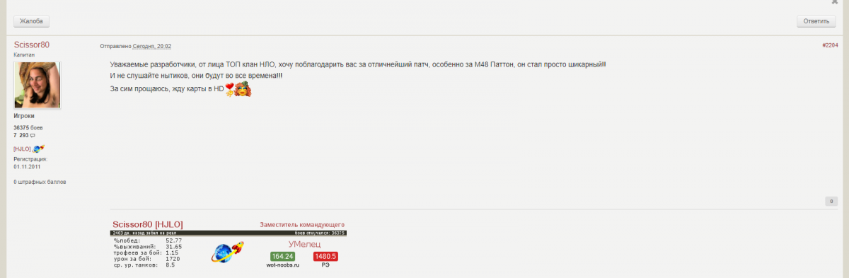 Scissor80 Опубликовано: 29 августа, 2017 Игроки 23 377 публикаций 52 192 боя Поделиться Опубликовано: 29 августа, 2017 (изменено) а как ты мотивировал разрабов на еще более продуктивную работу?http://forum.worldoftanks.ru/index.php?/topic/1917932-29-%D0%B0%D0%B2%D0%B3%D1%83%D1%81%D1%82%D0%B0-%D0%B2%D1%8B%D1%85%D0%BE%D0%B4%D0%B8%D1%82-%D0%BE%D0%B1%D0%BD%D0%BE%D0%B2%D0%BB%D0%B5%D0%BD%D0%B8%D0%B5-920/page__st__2200#topmost Изменено 29 августа, 2017 пользователем Scissor80 Это игра, в Вашей жизни не произошло ничего страшного Ссылка на комментарий