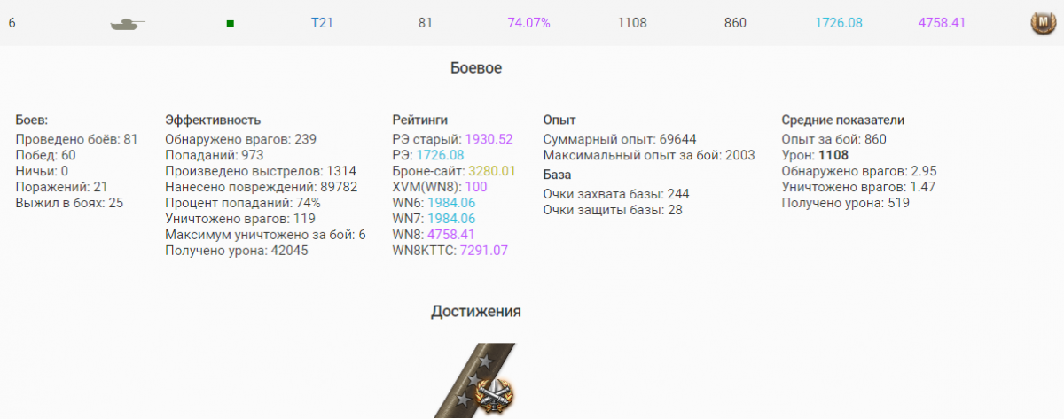 4epHbIu_BJlacmeJIuH Опубликовано: 17 октября, 2017 Игроки 12 430 публикаций 23 325 боёв Поделиться Опубликовано: 17 октября, 2017 вощем чёт быстро взял 3 звизды на т21 (всего за 81 бой) http://cdn-frm-eu.wargaming.net/wot/ru/uploads/monthly_10_2017/post-33831346-0-75107900-1508252936.pnghttp://cdn-frm-eu.wargaming.net/wot/ru/uploads/monthly_10_2017/post-33831346-0-73816700-1508252980.jpg Ссылка на комментарий