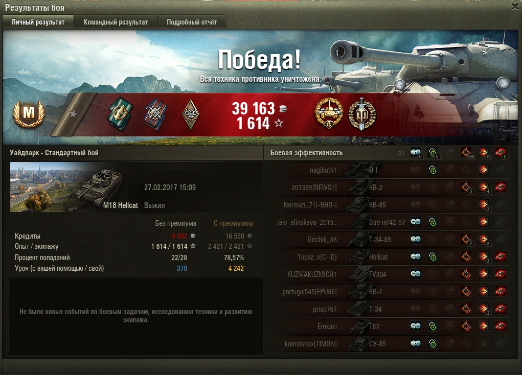 Yragan4uk Опубликовано: 27 февраля, 2017 Игроки 24 559 публикаций 33 052 боя Поделиться Опубликовано: 27 февраля, 2017 27 Фев 2017 - 14:29 пользователь OKone сказал: Я в Conqeror не смог.Средуха 900 на стоковой пухе, Топовую еще не открыл 916 эх, знатно в него фугасы заходят Ссылка на комментарий