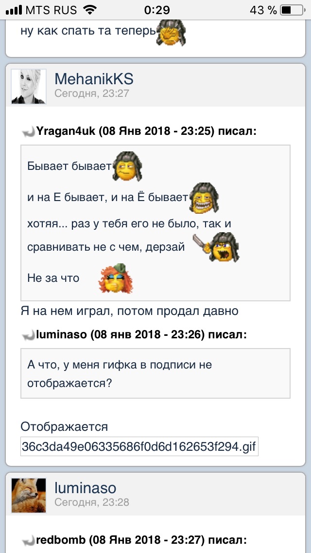 MehanikKS Опубликовано: 8 января, 2018 Игроки 21 190 публикаций 1 850 боёв Поделиться Опубликовано: 8 января, 2018 08 Янв 2018 - 23:25 пользователь Yragan4uk сказал:Бывает бываети на Е бывает, и на Ё бываетхотяя... раз у тебя его не было, так и сравнивать не с чем, дерзайНе за чтоЯ на нем играл, потом продал давно08 янв 2018 - 23:26 пользователь luminaso сказал:А что, у меня гифка в подписи не отображается? Отображаетсяhttp://s19.rimg.info/36c3da49e06335686f0d6d162653f294.gif ♕♕♕♕♕♕♕Канал Ютуб♕♕♕♕♕♕♕ ♕♕♕♕♕♕♕Коуб канал♕♕♕♕♕♕♕ Ссылка на комментарий Поделиться на других сайтах Другие способы поделиться...