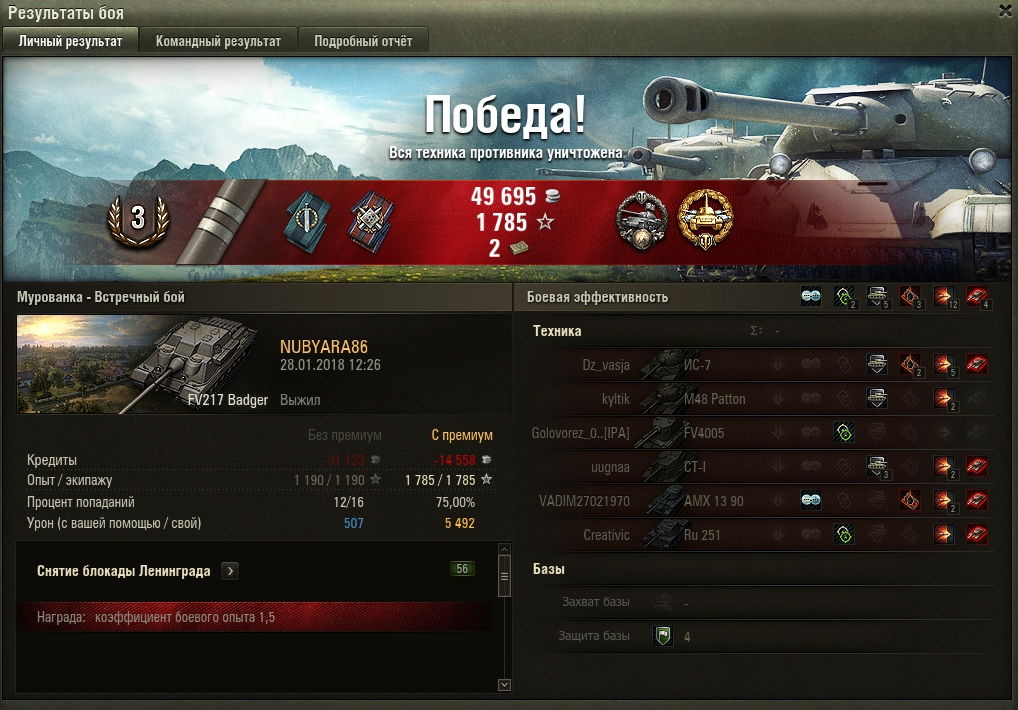 HAMMER_SAXON Опубликовано: 28 января, 2018 Игроки 55 060 публикаций 87 037 боёв Жалоба Поделиться Опубликовано: 28 января, 2018 3.1 - это не страшно. Обычно сутки ... и ты снова на свободе. Spoiler "...В принципе он прав, я его обманул что игра стала лучше и прочее! Но , уважаемы разработчики, почему за Вашу "прекрасную" игру должен это выслушивать Я? Я повёлся на халяву, каюсь в том что обманул человека о хорошей игре! Верните мне второй приглос! Я заведу бота им нравится Ваша игра! " KAJIbIMAH Vanitas vanitatum et omnia vanitas Ссылка на комментарий Поделиться на других сайтах Другие способы поделиться...