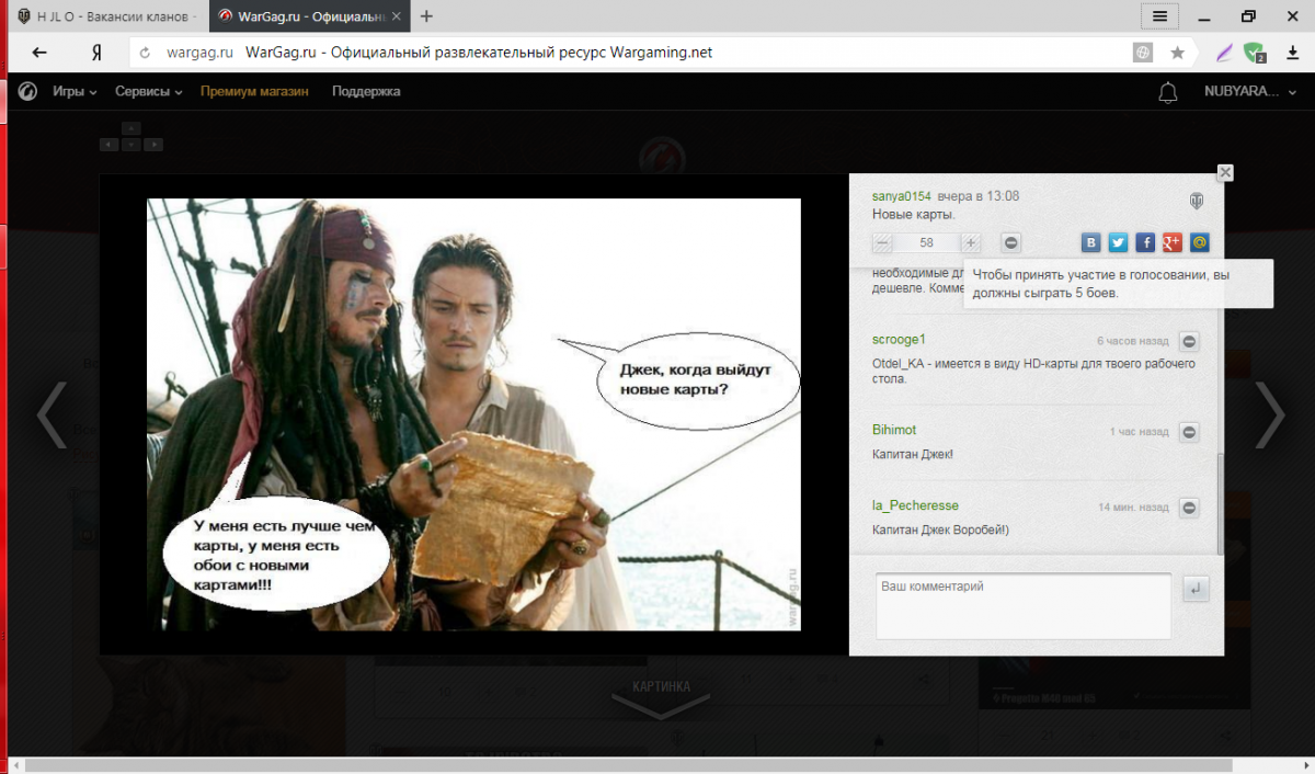 NUBYARA71 Опубликовано: 13 марта, 2018 Игроки 16 316 публикаций 36 247 боёв Поделиться Опубликовано: 13 марта, 2018 13 Мар 2018 - 15:01 пользователь sanya0154 сказал:Всем добрый деньЕсли не затруднит, лайкните мою картинкуhttp://wargag.ru/pictures/539901/http://cdn-frm-eu.wargaming.net/wot/ru/uploads/monthly_03_2018/post-4815636-0-39841600-1520943960.pngСань тут такое дело ,вощем у мну байоф для лайканья маловато Ссылка на комментарий Поделиться на других сайтах Другие способы поделиться...