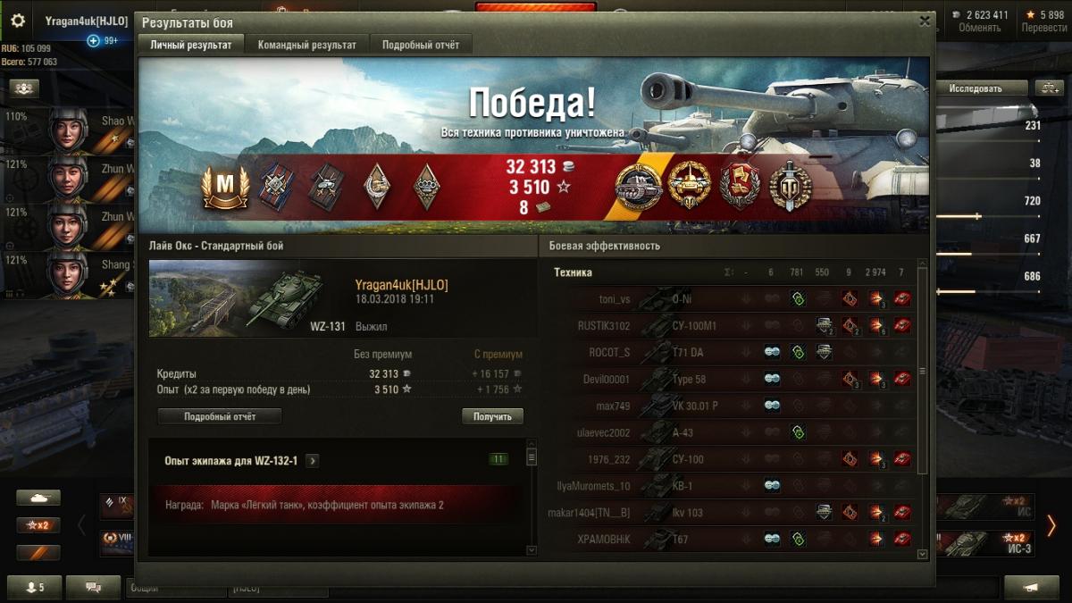 KrAB_v_TaN4iKe Опубликовано: 27 марта, 2018 Игроки 12 276 публикаций 33 602 боя Жалоба Поделиться Опубликовано: 27 марта, 2018 И снова здравствуйте Ссылка на комментарий Поделиться на других сайтах Другие способы поделиться...