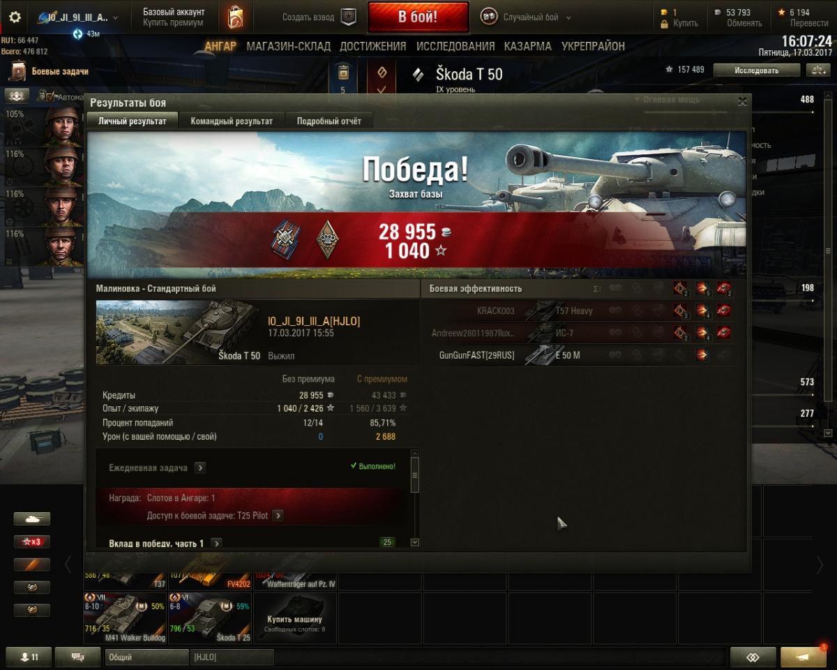 Exit76rus Опубликовано: 17 марта, 2017 Игроки 19 429 публикаций 42 131 бой Жалоба Поделиться Опубликовано: 17 марта, 2017 17 Мар 2017 - 16:12 пользователь sanya0154 сказал:Смотри не укушайся Привет Сань , 75% за твоё здоровье ! --Объедин. плз. ЦПП Правила форума Прочти, перед тем как задавать вопрос Ссылка на комментарий Поделиться на других сайтах Другие способы поделиться...