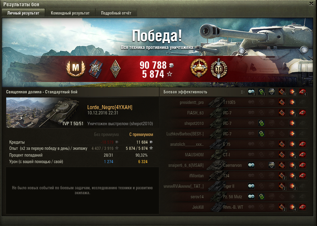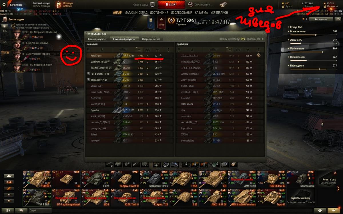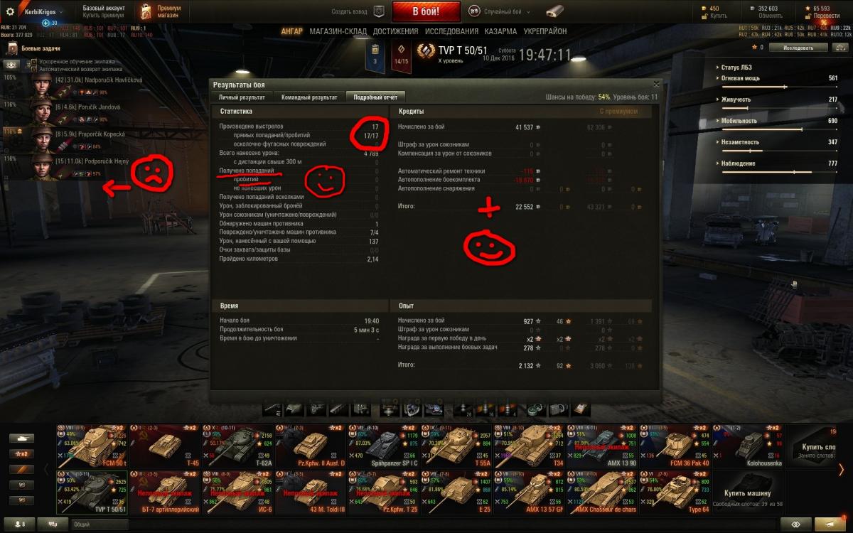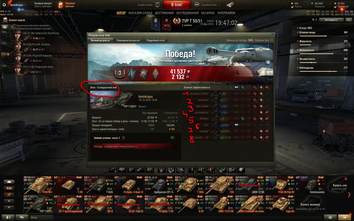 Играю сейчас редко, мало. Но вот зашел, так, звезды посбивать. Вообще то ТВП, как ни крути имбища. Всяко бывает конечно, но вот первый же сегодня бой и результаты, ничего выдающегося, однако, я специально отметил кое какие моменты, а вы делайте выводы и жду комментариев. Интересно, кто, что заметит? :)