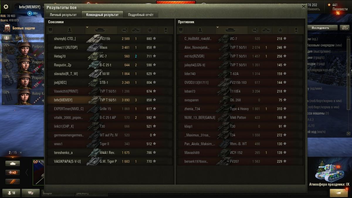 подолью в топку масла чутка. купил танчик(еще не откатал 300 боев). скажем таки зашел лучше чем бат. ибо кд внутри барабана жесть. кд быстрое. увн же немного есть. но таки бат не светится, а твп таки да. в реалиях рандома твп получше будет в плане настрела - выдать на 1950 с бата и 1200 с твп за 5 сек - есть разница. но в принципе от команды все зависит. в лоб тт не пробивает - ибо 248 мне показалось сходная по пробитию с пушкой от т54 - та, где 201 пробоя. то есть е100 в нлд даже не всегда залетает. конешно можно и голду поюзать(нет, я жадный, фармить неохота). но именно на нем выдал рекорд по урону -8300 на акке. хотя на бате в этих условиях выдал скорей всего больше. не совсем имба, но и не кактус. в принципе одновременно взял с ним 121 и 140. позволяет хорошо нагнуть если на голде - так и на голде совкост нагибают так же(любой в принципе танк на голде может). попробую откатать боев 150-200 вместе с 140 - посмотрим что лучше зайдет. а игроки выше 1400 рэ нагнут в принципе даже на ведре с пулеметом.