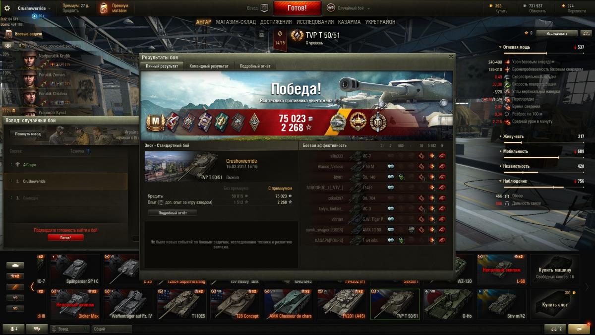 откатано 17 боев только, но мастера повезло уже взять реплайчик