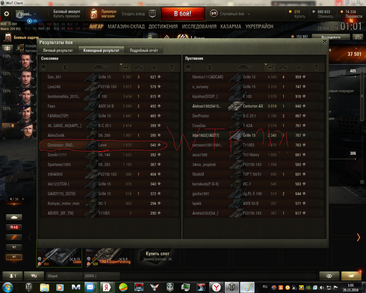 RenamedUser_72363251 Опубликовано: 29 ноября, 2016 Игроки 1 068 публикаций 376 боёв Поделиться Опубликовано: 29 ноября, 2016 Там не 29 девяток. Там у вас еще на три тяжа 10 лвл меньше чем у врагов. Е5 и ИС-7 в твоей команде еще стоковые были. Розыгрыш 500р на стримах. 1. подписаться. 2 услышать код. 3.следить за стримами всего пять) 4. на пятом узнать последний код и написать его в чате. 5. получить 500р. Ссылка на комментарий