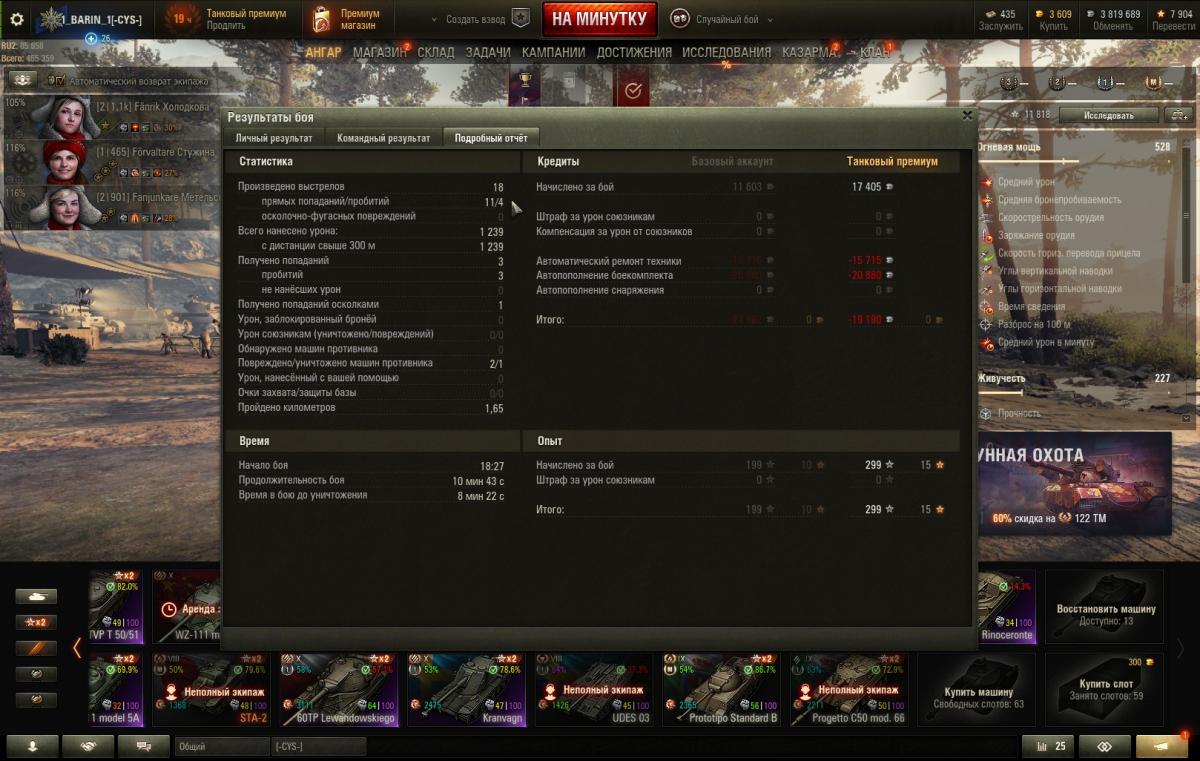 и обратите внимание на процент попаданий - пробитий в последнем бою: