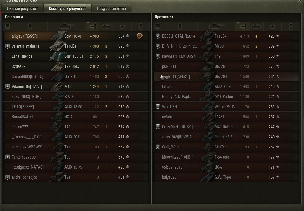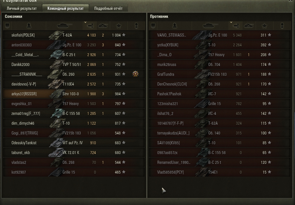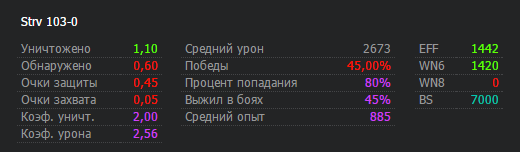 Настрел получился больше за счет того, что противники в конце боёв пёрли не разбирая дороги, за счёт чего я и настреливал. Думаете, играть разучился за сутки? Нифига подобного, просто выпало мне в тот день меньше "орлов" и больше "решек", вот и всё. Если уж Ваши 72% продержатся на паре сотен боёв, то тогда я снимаю шляпу, но сейчас я вижу 52.6% - случайность? Не думаю так.