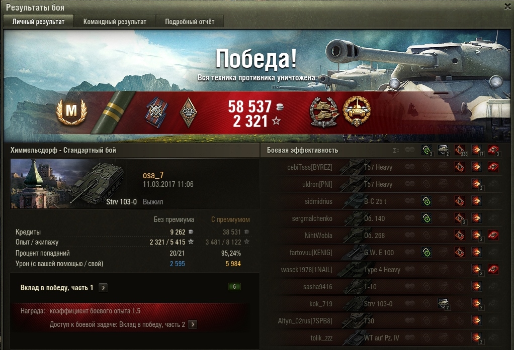 Мне тоже повезло :) На химках, кстати, эта пт у меня неплохо заходит, довольно много боев с настрелом на горе.