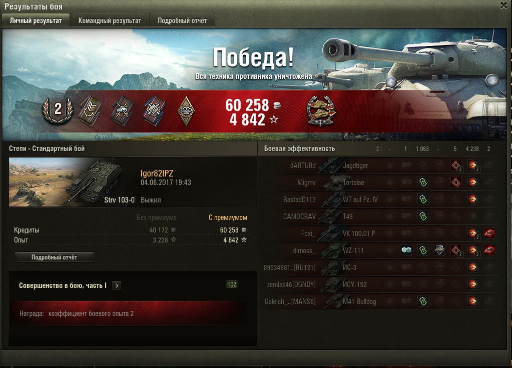• Изначально понравилась механика, а тут еще скидоны и экипажик!!! Уже дошел до 103-0, хочу гайд посмотреть