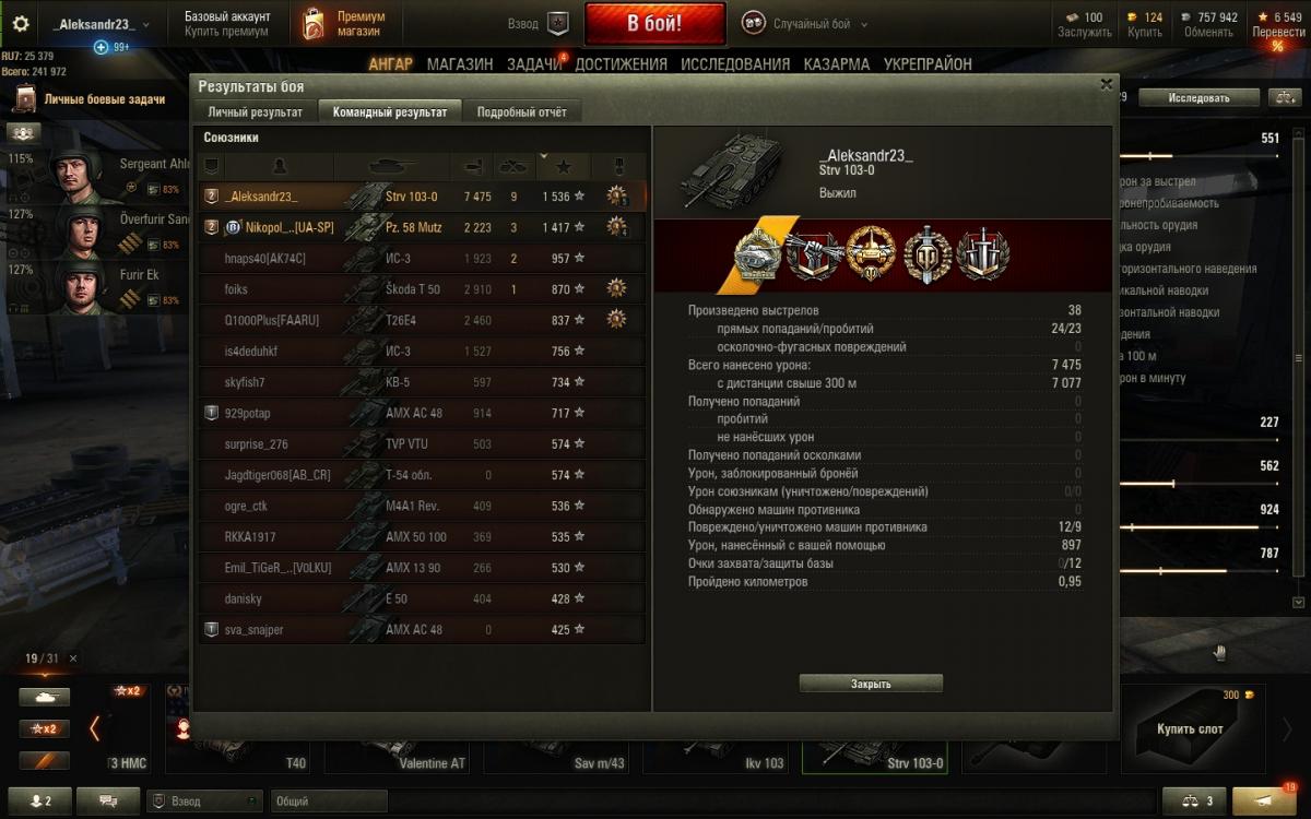 Великолепная ПТ. Пробивная пуха,неплохая маскировка, отличная скорость. Минусы - постоянное дерганье из режима в режим, плохо разворачивается( у ВГ ведь логика удивительная - танк может ехать 50+ км\ч вперед и назад, но именно поворачивает медленно,хотя поворачивает за счет перемотки тех же гусениц. Там какая-то отдельная передача в коробке именно для поворота?).Пробитие стандартным снарядом дикое( по ТТХ), но это не мешает частенько кого-то не пробивать. Пушка вроде в пиксель попадает - но опять же очень все рандомно. Танкует!!!! по 3-4к заблокированного - частенько, но тоже рандомно, то есть непонятно - пробьют в данный момент либо нет. Ладно, поглядим на СТРВ103Б, два боя сгонять осталось до нее)))