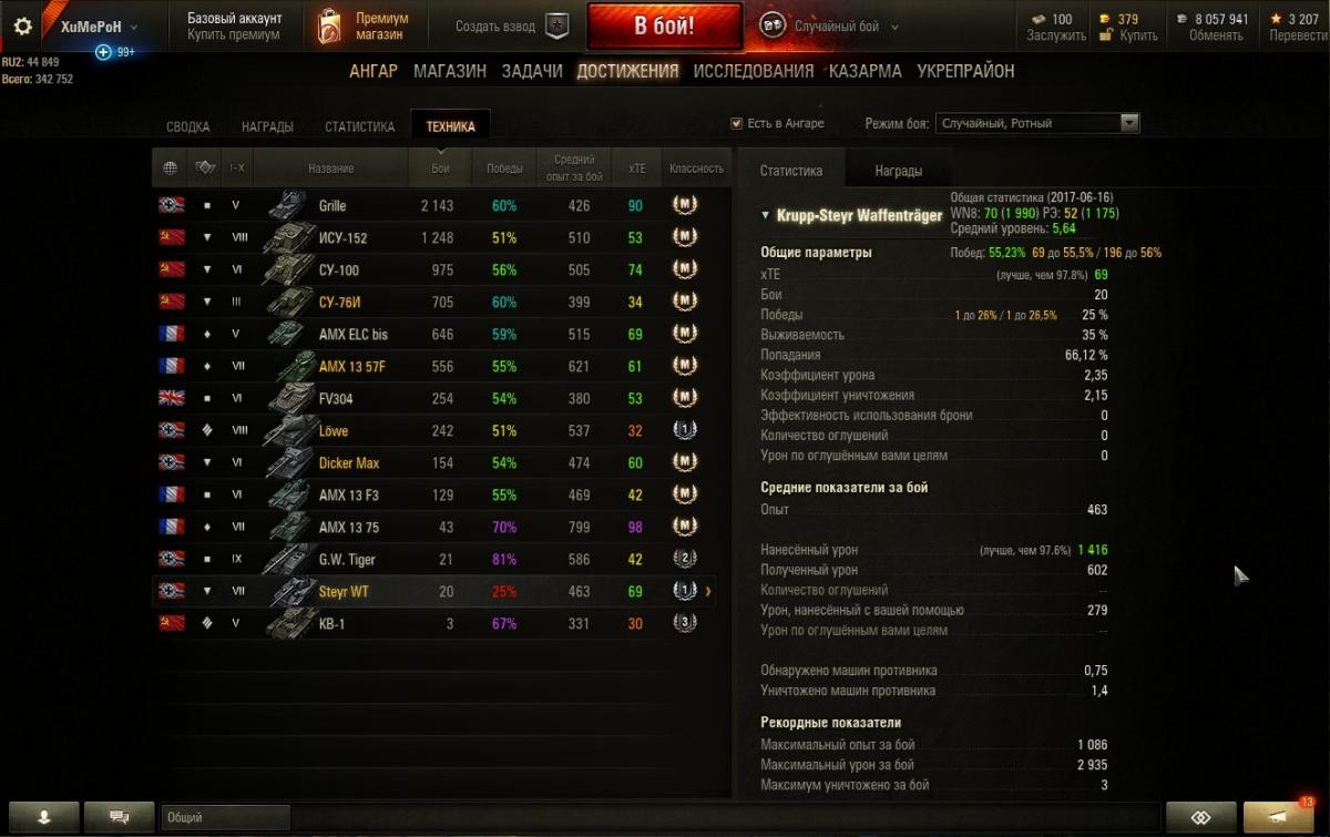 У меня на скрине в гайде вся техника настроена таким образом, чтобы ТТХ отображались при 100% экипаже без навыков, умений, оборудования, снаряжения