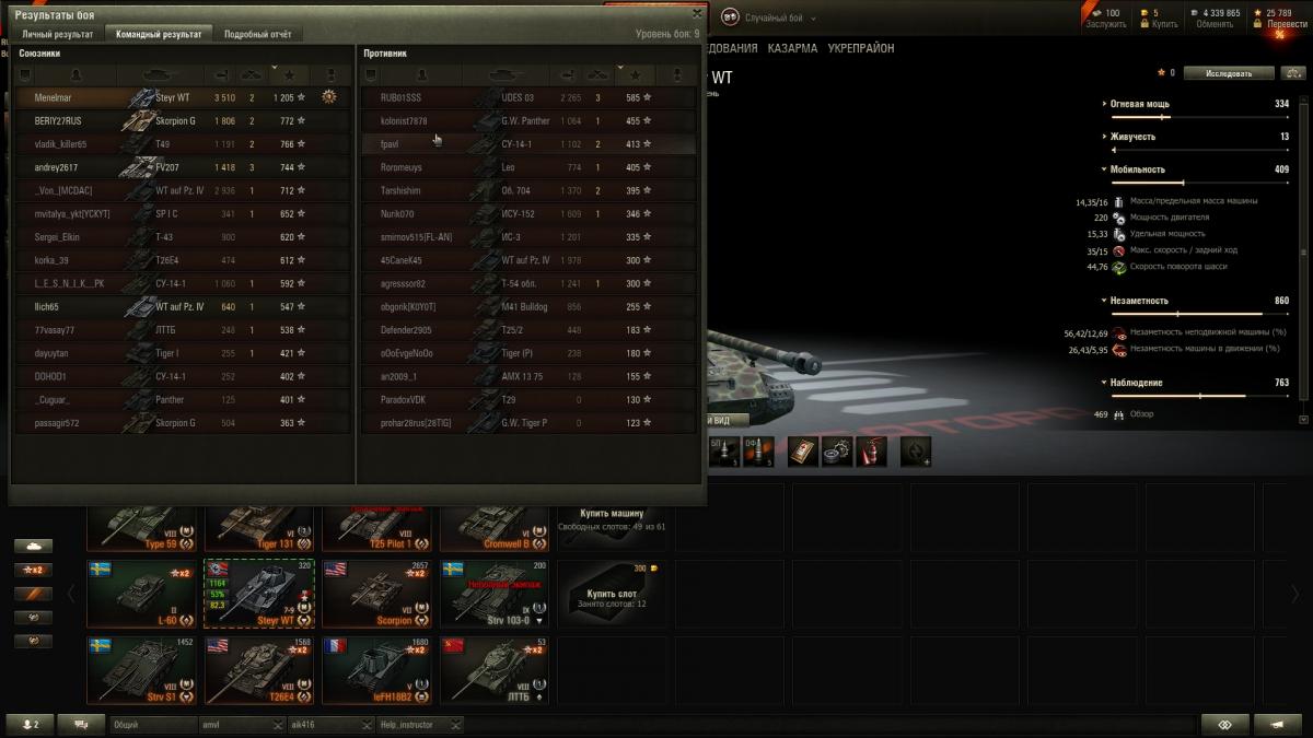 Если бы тип 59 с ходу врезался в меня и продолжал в клинче, пробил бы его всего один раз, если бы повезло. Но он решил крутить, несмотря на 10к боев на тип 59. Это было его ошибкой.  На тип 59 в клинче в трене 5 из 5-ти заездов начисто без вариантов разбирал крайслера. Если на карте есть большой камень, холм, или строение, то играю от кормы, встаю задом к углу, и на кд отхожу с линии огня. Так были убиты скорп г( 1000 ему снял) и еще немало незнакомых с штейром страшных тт))