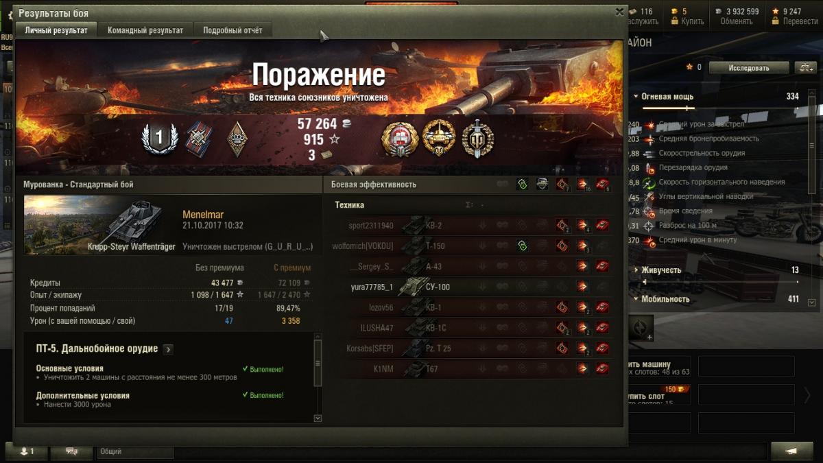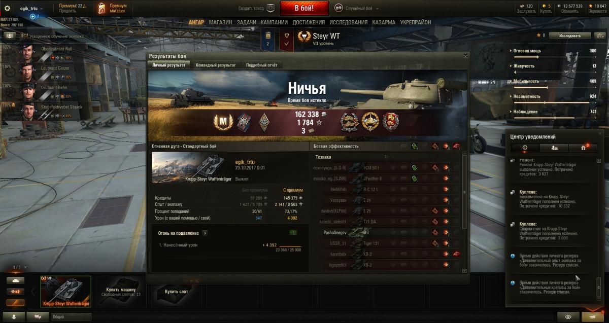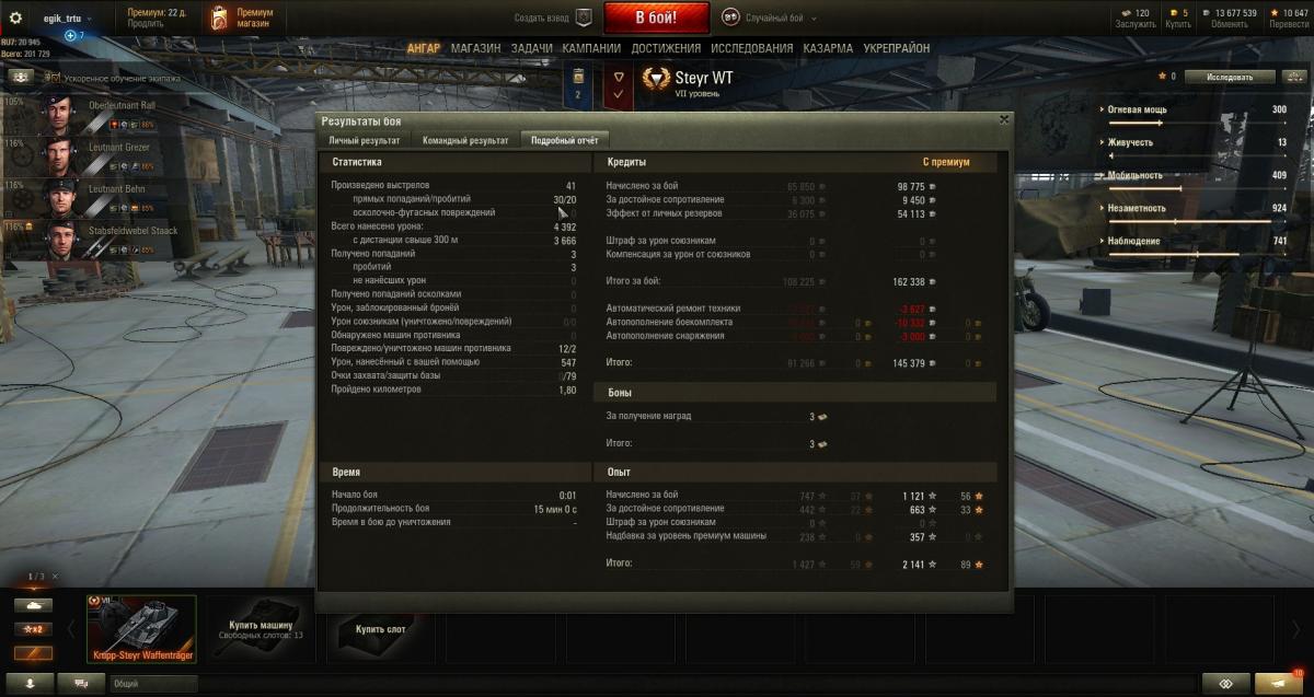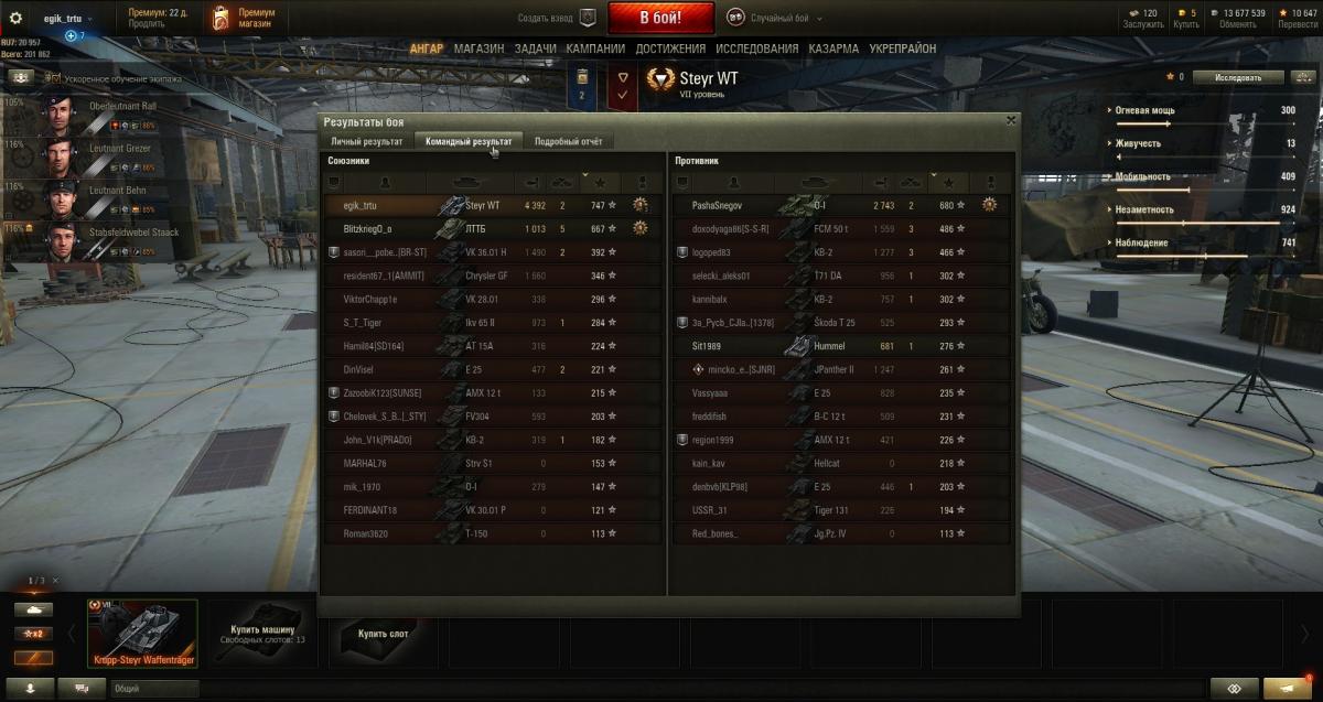 Удивило только одно, что такая дамажка подкинула чуть больше чем 3к вн 8, выходит папки на ней играют в 2100-2200 среднего и выше? С другой стороны, если смотреть топ игроков на штыре, то там у топов было что-то в районе 1600.