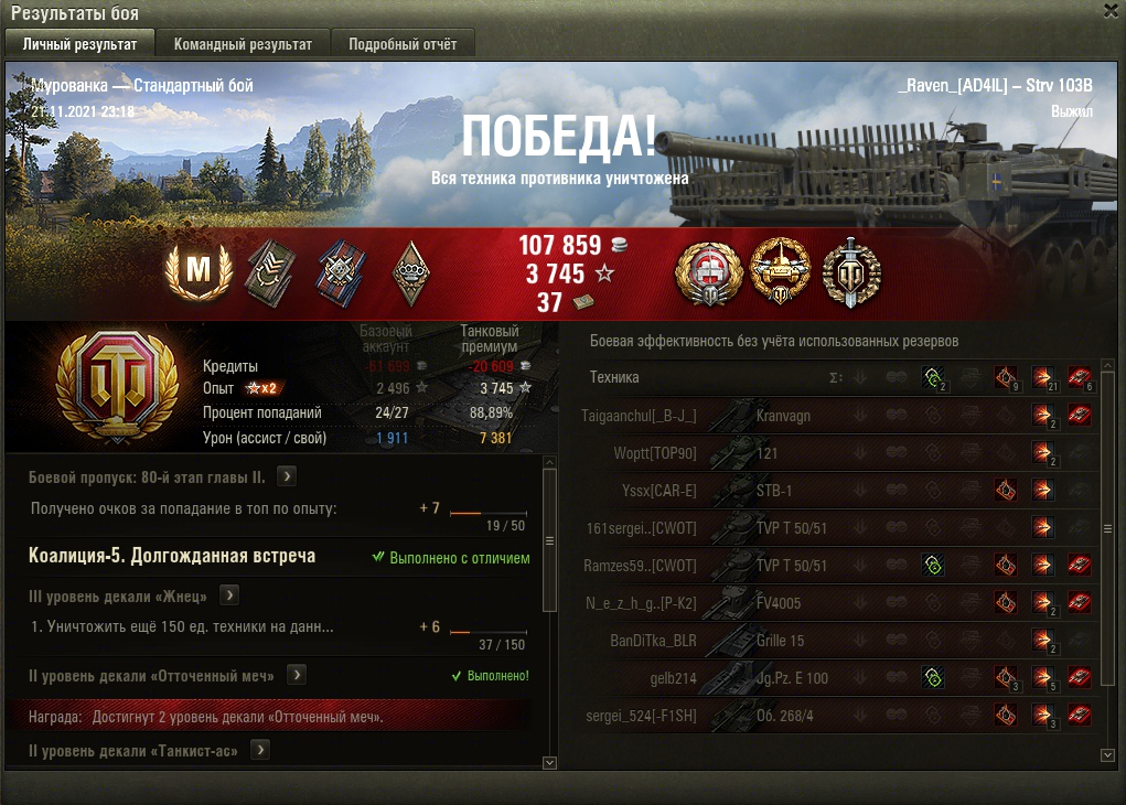 Кстати, в Заслуженной награде, можно приобрести 3D-стиль "Хель" для Strv 103В, вполне неплохо выглядит, рекомендую.