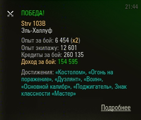 Дабы не было соблазна еще раз попадать в такую нервотрепку - продал танк. Хpен с этим серебром и потраченными бонами, нервы дороже. Игра на 10-х уровнях зло. Просто какой-то верх идиотизма там. Там надо либо взводом, либо вообще никак.