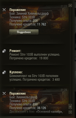 Strv 103B исследован. Потрачено нераспределённого опыта 240800, свободного опыта 0.
