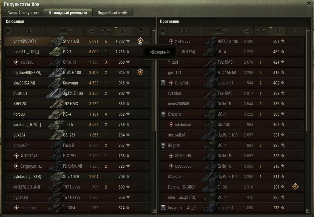 Чудо опять ты?!)))с чужими скринами))) Ваня не позорься, если у тебя т95 стоит у красной линии, то это твои проблемы, а пример который ты привел к чему? ну парень неплохо играет на стерве, да же есть 1 дозорный (у меня их 2 на т95:teethhappy:) и так сильно играет впереди что коф уничтожения у него 2.80 против 2.94 моих и это с кд в 14 секунд ага, а если глянуть что там с заблокированным уроном, то сразу видно кто  штурмовой, а кто так побалаболить вылез:trollface: