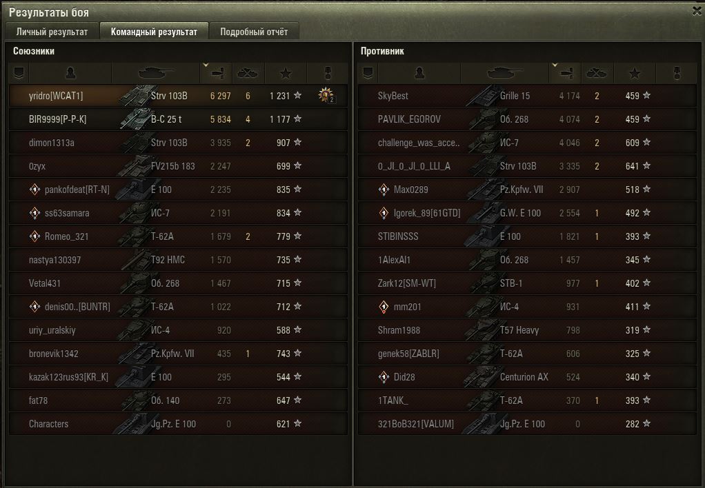Да стерва просто поднерфлена для 10 левела. Не имба. Будь она незаметнее, когда спрятана на 2-3 за холмом.стреляй она как в жизни 15 раз в минуту, и рикошеть от нее  чуть более.... а то с 10 она гу никуда. Когда против тебя одни е 100 и ис 7, которых не всегда пррбьешь ( далеко не всегда)) а ведь помимо этого у них по 3000 хп- само собой настрелять сложно. А они же тебя ещё и засвечивают, и бабахами виртуозно попадают в клочок кузова, торчащий над  землей без сведения. Вот стрв с1, несмотря что занерфили мощность у неё- она хорошо сбалансена- легко на ней держу 1-3 место в команде, 60+ побед.... так блин, а на 103б играть то дороговато.... короче, начинаю разочаровываться. Сделайте прем 103 с- тогда буду рад