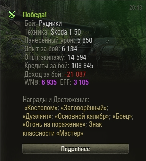 Да не оглушение это жирно будет) Можно башню от т62а и увн -15) А если серьезно то танк хорош, просто я на нем "ракую" - союзники бросили фланг, а я пытаюсь сдерживать противников там. Ни разу не получилось) Как тут и писали ранее т50 нужны союзники, которые получают урон. Жаль раньше не послушал, буду теперь исправляться
