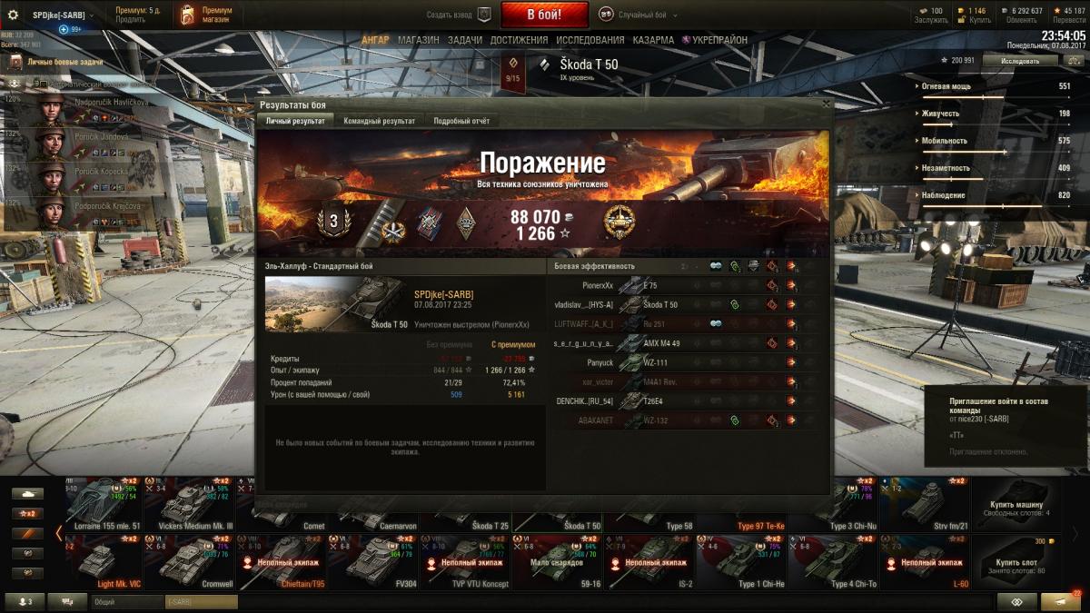 что-то не видно у вас в ангаре твп 5051. гемплей на них отличается. оставил оба танка. шкода сейчас самый фановый для меня наряду с лорой