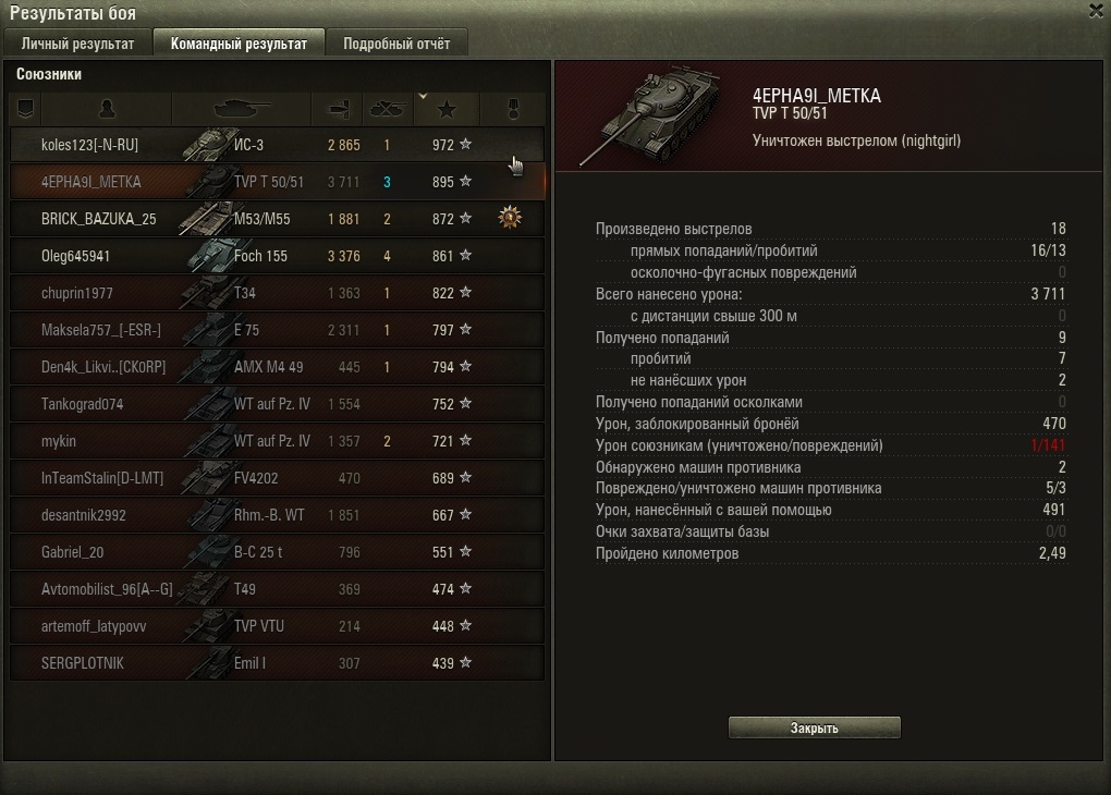 С такой ситуацией, если мне не изменяет память, не сталкивался. Бой доиграл (в дуэли с Е50М умерли оба одновременно:))По результатам боя в итоговой таблице поголубел. Кому-то из наших нанес 141 урона. Как долго голубоватая пометка меня будет преследовать?