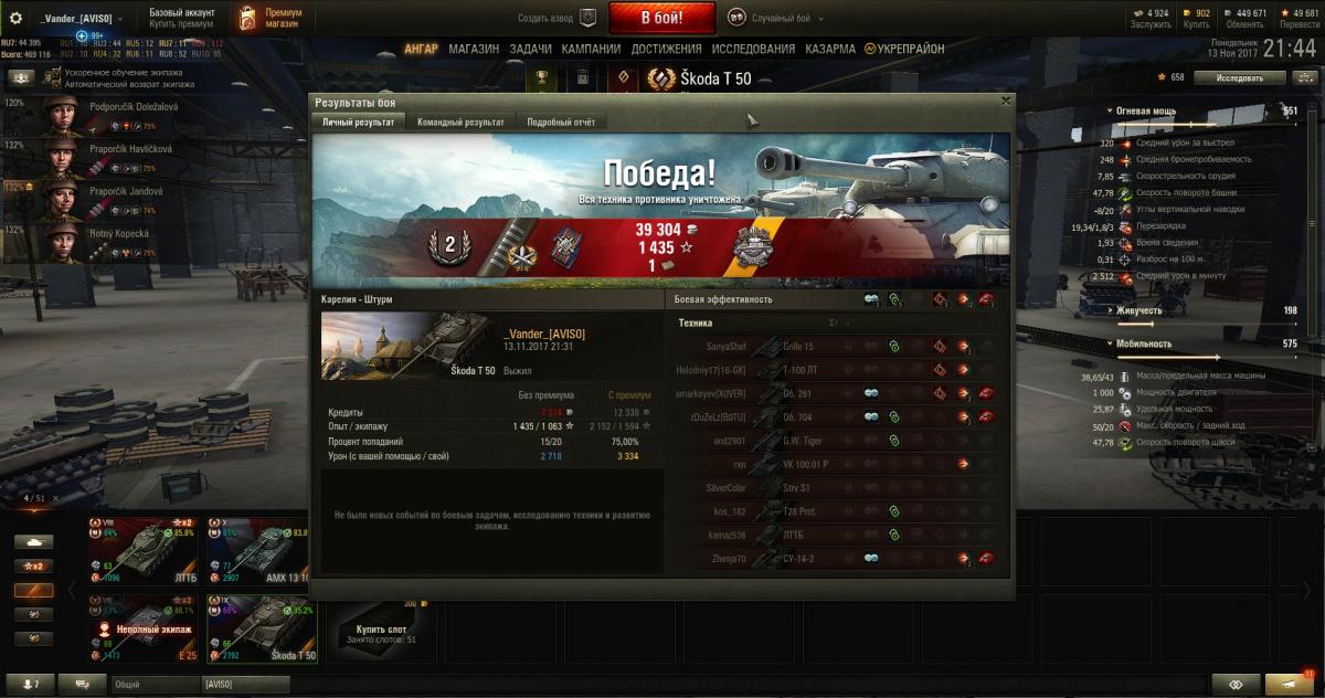 все успокоился - поднял пп до 54...просто боев еще мало на нем и пп может прыгать существенно даже после 1го боя....вывел в топ танчик, начал очень нравиться: вроде и не спешный, но крутиться норм и скорость набирает вполне шустро. Куда раньше успевал на более быстрых машинках, да в принципе и на этом успеваю теперь. Ощутил прелесть его геймплея - он принципиально отличается от резвых французиков, я бы скорее даже сказал, что приучает к более меланхоличному стилю -  вроде  пт когда на них играют как на ст(я так СкорпаГ юзаю)....пушка просто огонь! средушку опять таки поднял на нем еще чутка  - до 2280(думаю, что при моих клешнях если станет 2300 то вполне буду удовлетворен этим резалтом)......очень начал нравится мафынко....жалко только , что ведь порежут наверняка:(