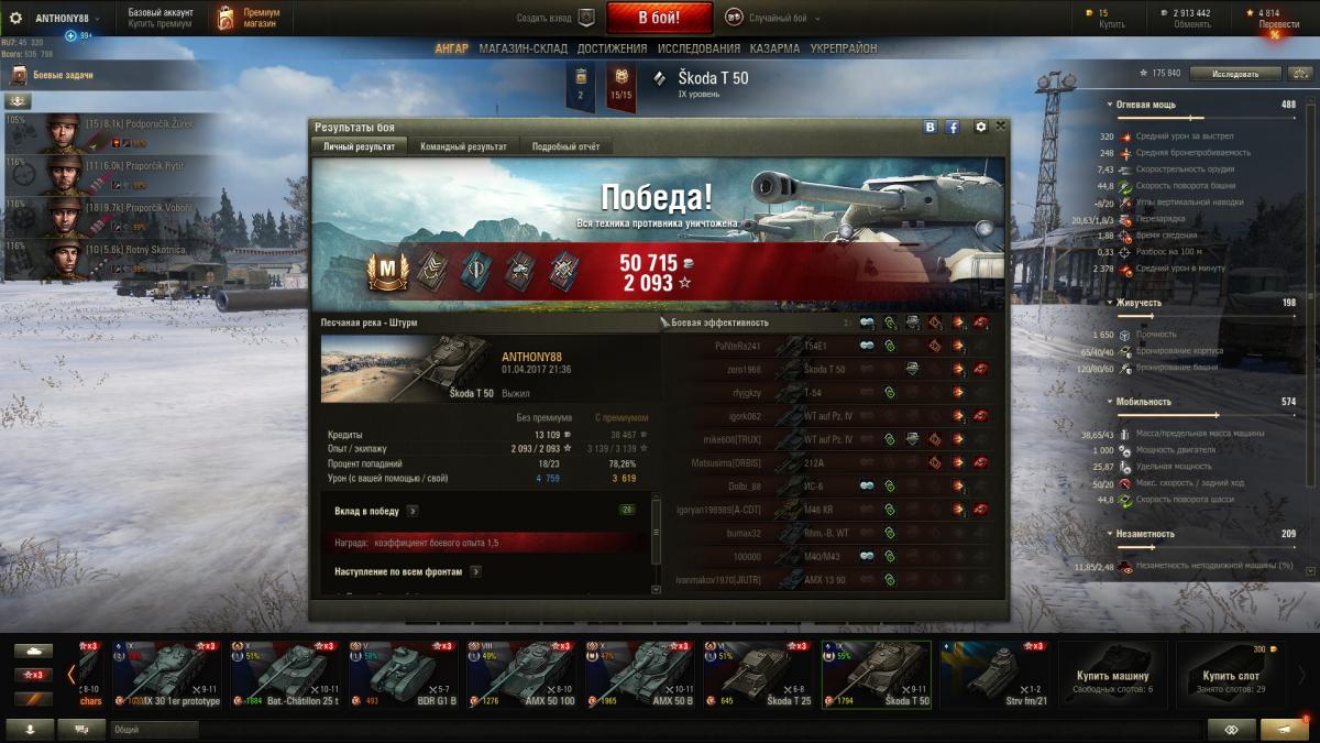 Топ Башня - Škoda T 50 (1950) -   опыт 24400 и http://wiki.gcdn.co/images/1/14/Silver_icon.png 58000