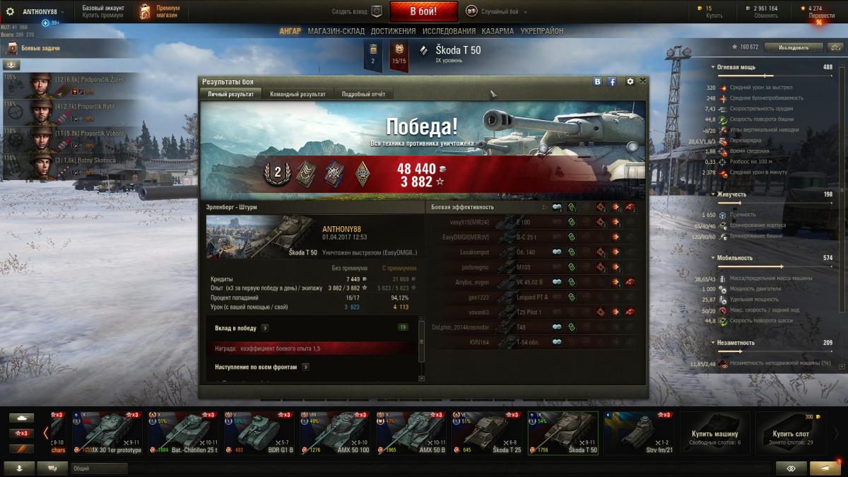 Хоть и всего 16 боев откатал, но танк огонь. Уже 2 мастера взял, 2 редли-уолтера, средний урон пока небольшой 2650, но думаю поправлю, т.к. экипаж еще не 100% и движка нет.